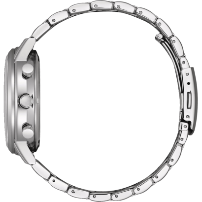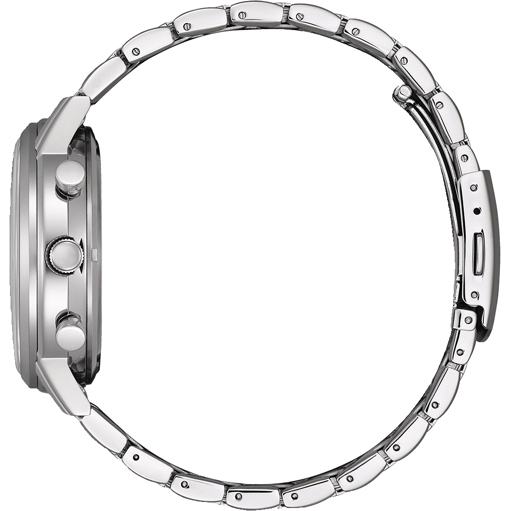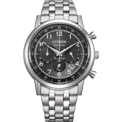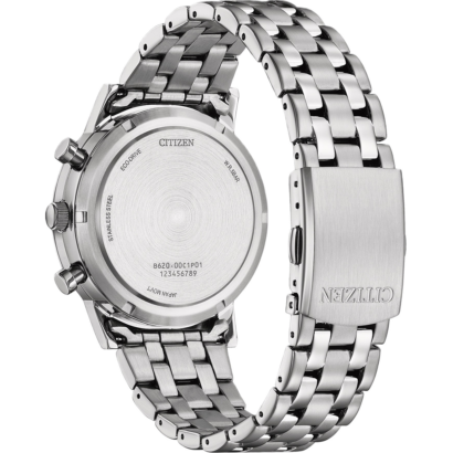 The Citizen CA4630-53E is a stylish men’s watch with a 42mm stainless steel case and bracelet, featuring a sleek black dial with easy-to-read Arabic numerals.