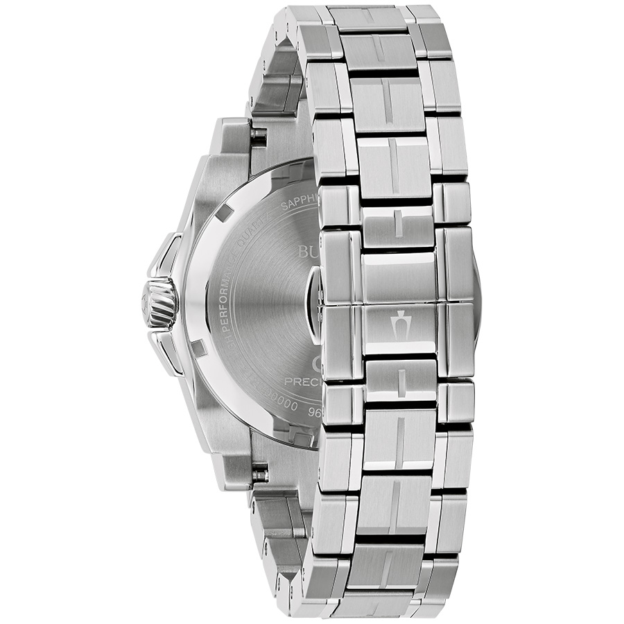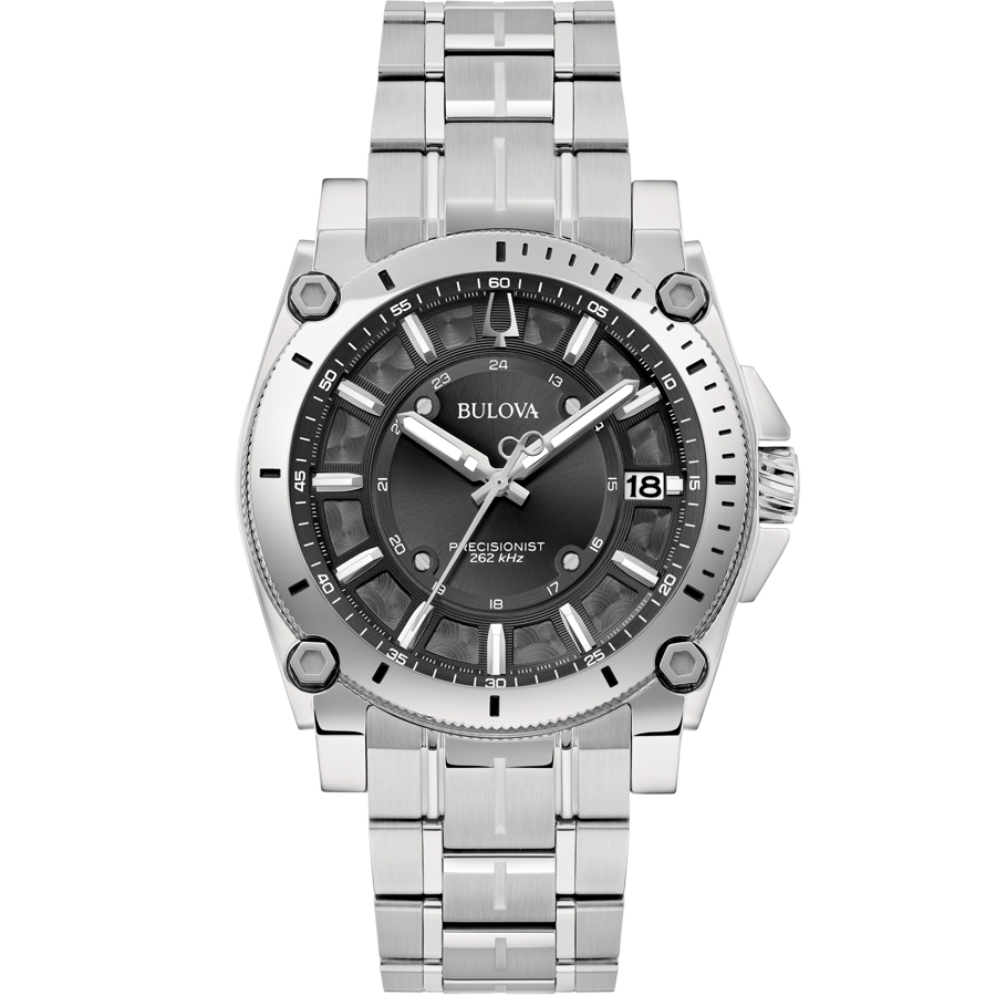 NN50-YAT Precisionist quartz movement with 3-point torsional resonator, continuous sweep seconds hand and 262 kHz frequency with 16 jewels (8 times greater than standard quartz). Accuracy range +/- seconds per month.