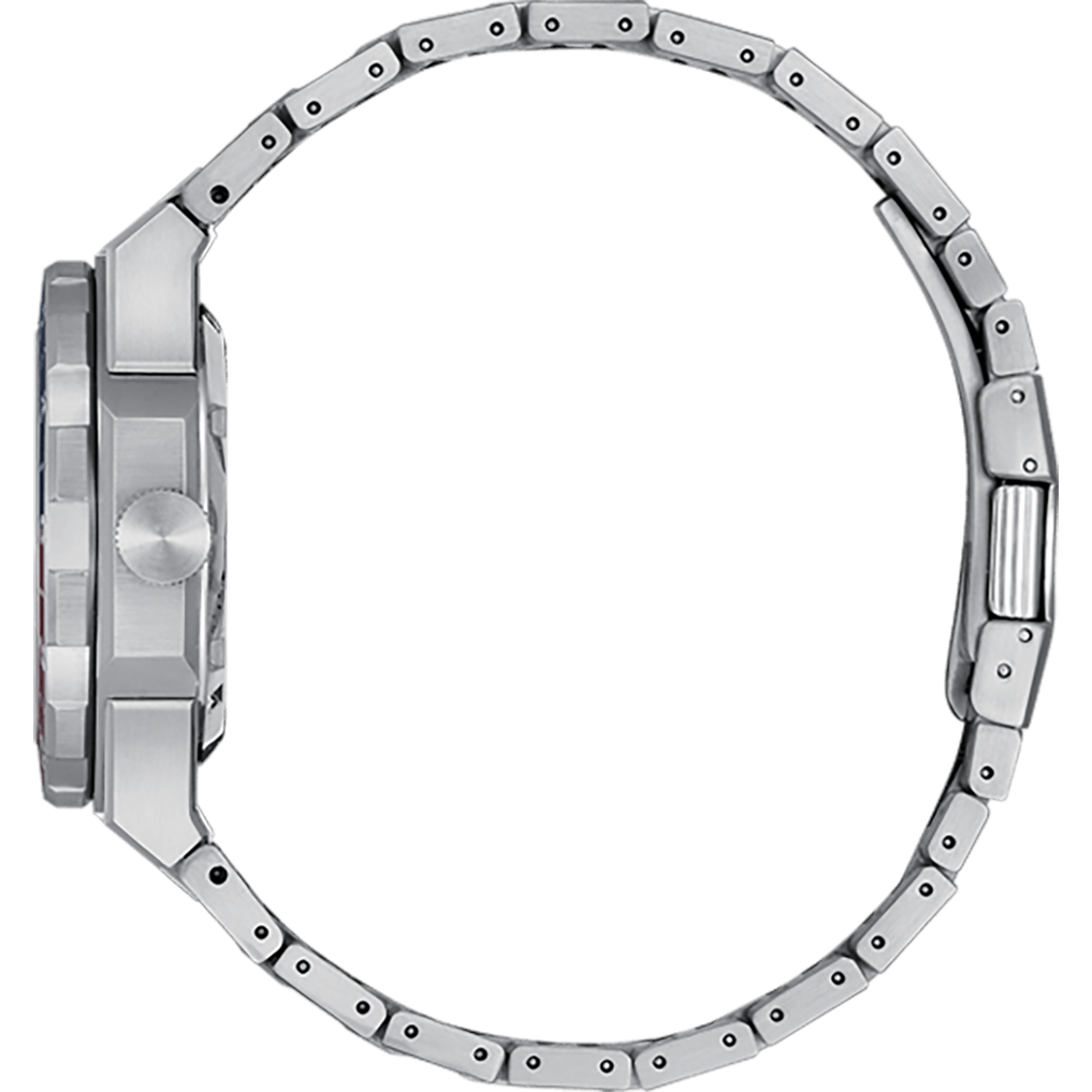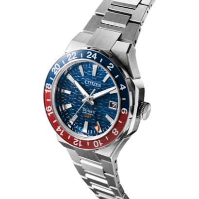 Featuring a silver-tone stainless steel 41mm case with a red and blue-tone bi-directional bezel, the model highlights the best of Citizen’s brushed and polished finishing techniques.