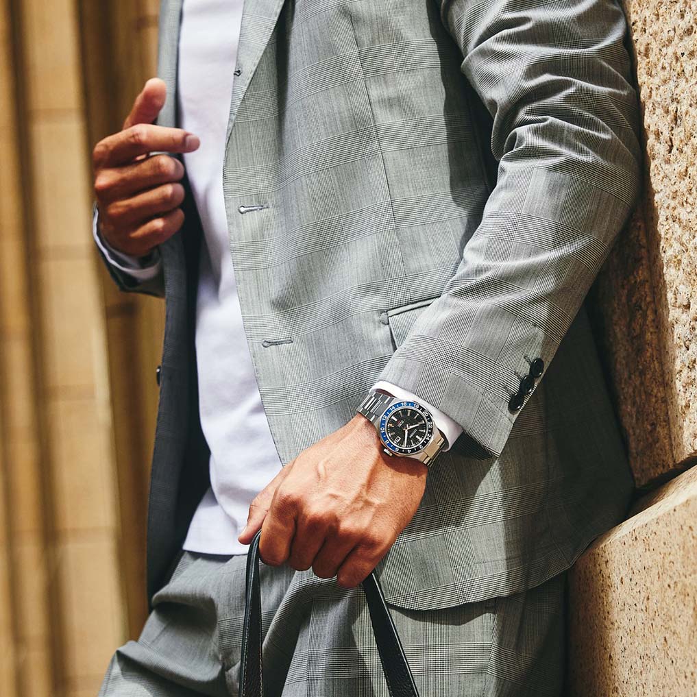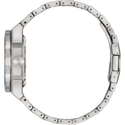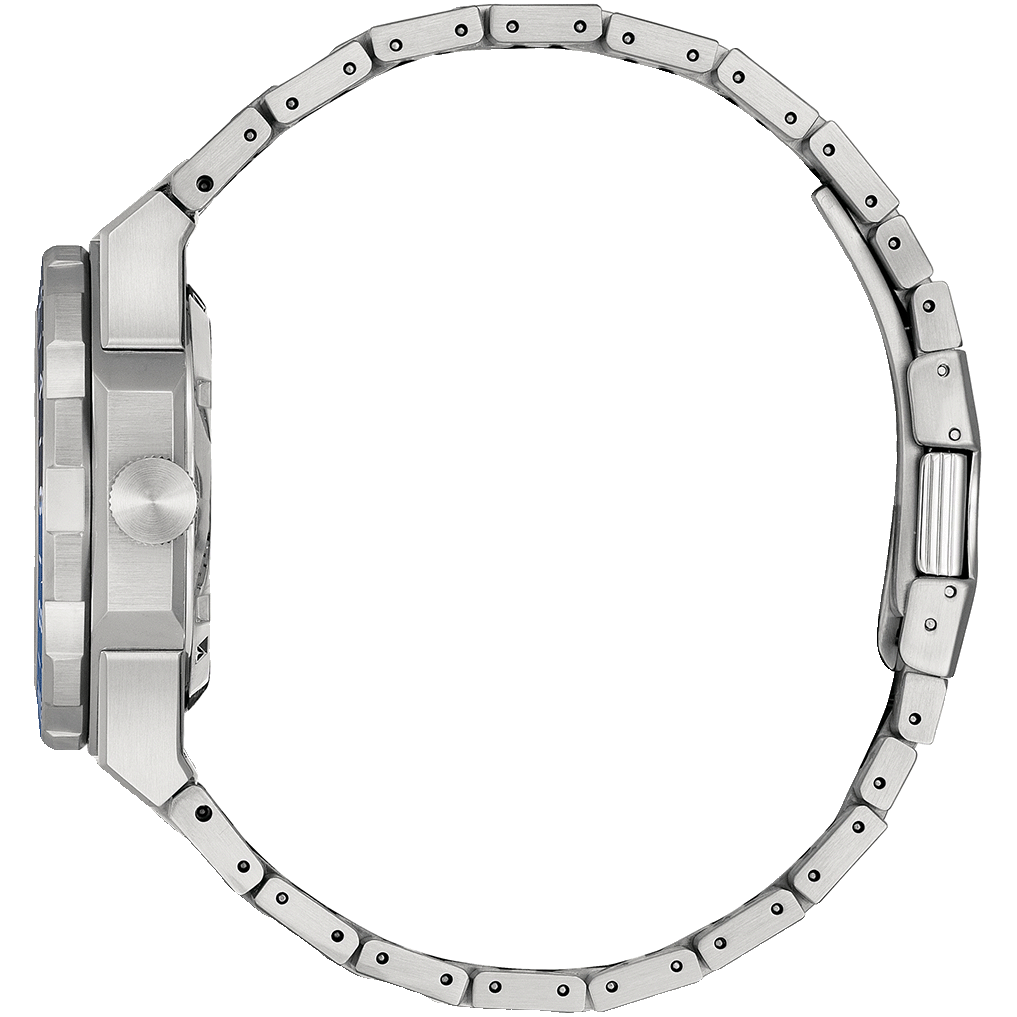 Featuring a silver-tone stainless steel 41mm case with a black and blue-tone bi-directional bezel, the model highlights the best of Citizen’s brushed and polished finishing techniques.