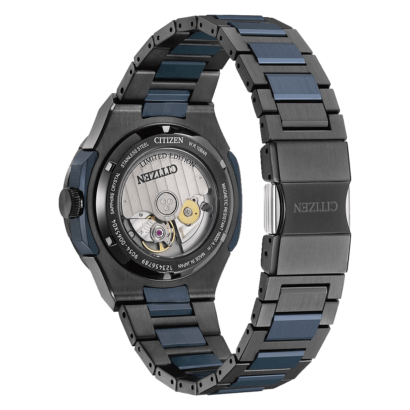 Featuring a black and blue two-tone stainless steel case with a bi-directional bezel, the 41mm model highlights the best of Citizen’s creative watchmaking and finishing techniques.