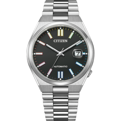 The automatic caliber 8210 movement is a testament to the craftsmanship and reliability that CITIZEN is known for, offering a glimpse into the art of traditional watchmaking.The black dial acts as a canvas for the colorful markers, each one a stroke of paint on a palette, providing a daily dose of cheer without overwhelming the senses.