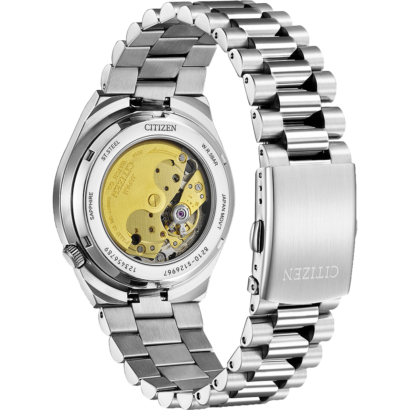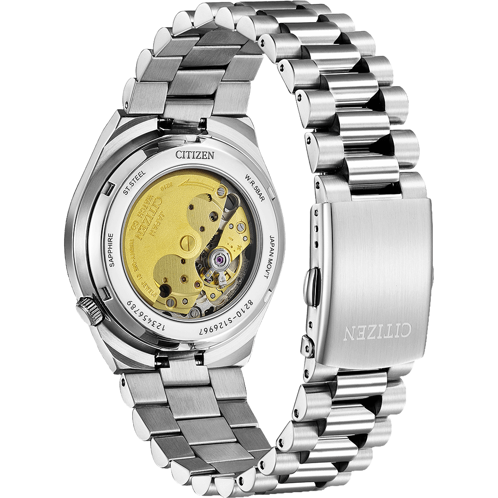 Encased in a sleek stainless-steel body, the watch features a classic 40mm diameter that is perfectly proportioned for both presence and comfort. The automatic caliber 8210 movement is a testament to the craftsmanship and reliability that CITIZEN is known for, offering a glimpse into the art of traditional watchmaking.