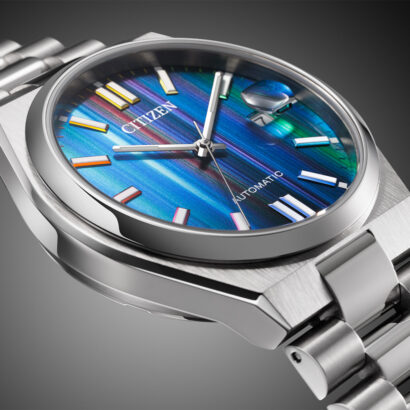 The new Tsuyosa Collection offers a striking watch that encapsulates a dance of colors upon its dial. The vertical stripes in a myriad of hues create a dynamic and vibrant display reminiscent of the aurora’s magical ribbons in the night sky. This design seamlessly marries the artistry of color with the precision of timekeeping.Encased in a sleek stainless-steel body, the watch features a classic 40mm diameter that is perfectly proportioned for both presence and comfort.