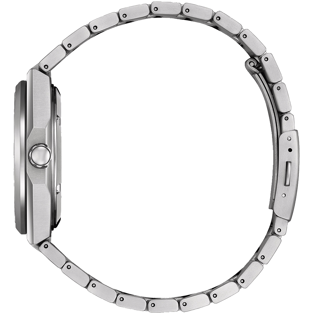 Made with our proprietary material, Super Titanium™, which is five times harder and 40% lighter than stainless steel and is scratch- and rust-resistant, this sporty timepiece features a 40.5mm silver-tone Super Titanium™ case that is elevated with finely brushed and polished finishing while being secured to the wrist with an integrated matching bracelet.